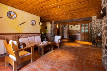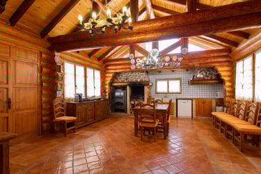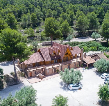 La finca está compuesta por una casa principal de 600 metros cuadrados de madera, que se integra perfectamente con el entorno, y una masía adicional de 800 metros cuadrados, ideal para tener momentos de ocio únicos con nuestros familiares. Para mostrar la ubicación privilegiada de la finca, hemos realizado un vídeo aéreo que ofrece una visión panorámica de su espléndido entorno.